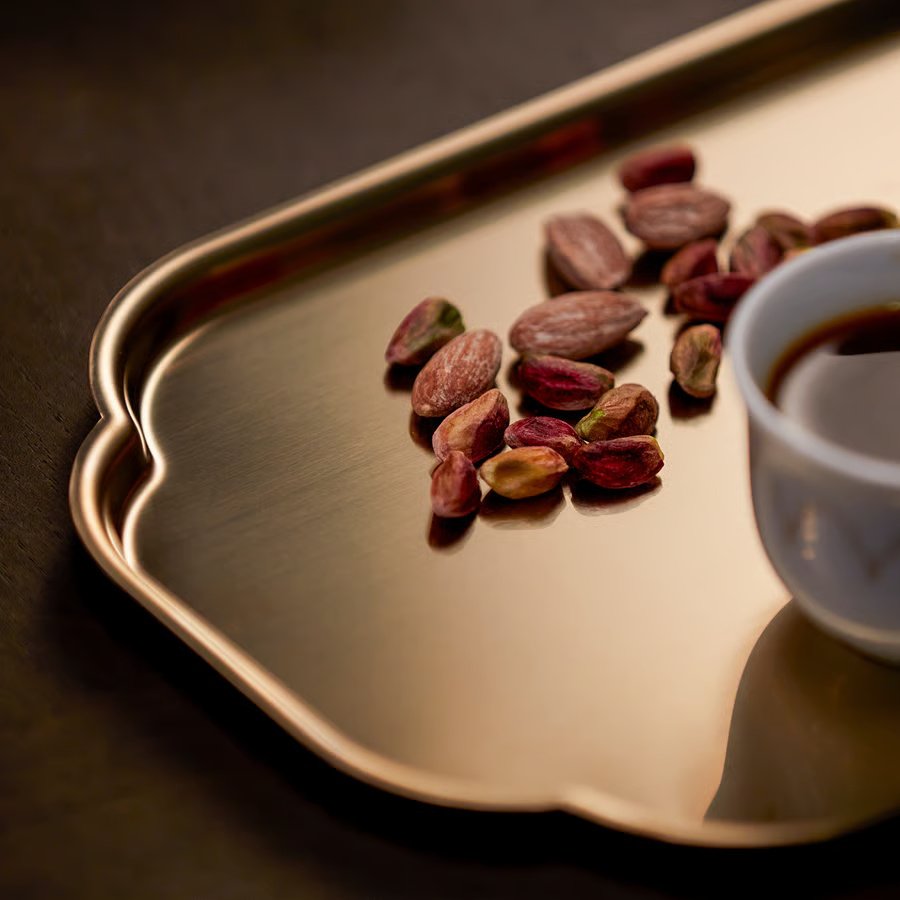 Made of stainless steel with a brass-coloured coating.