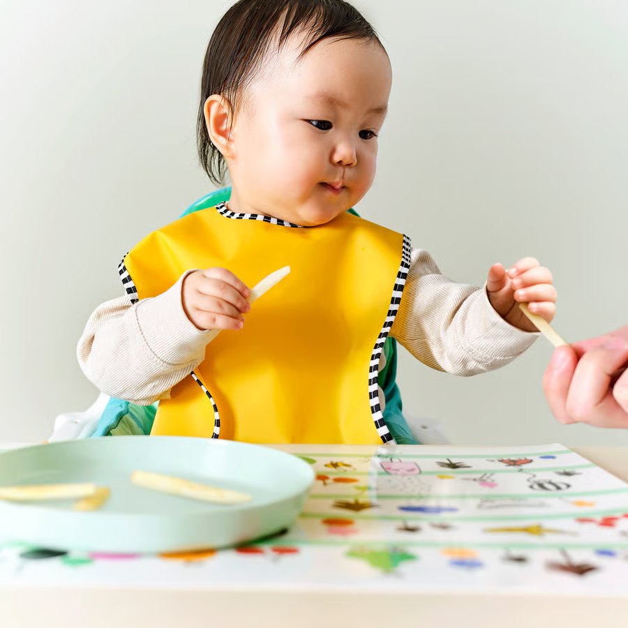 The bibs are easy to adjust to the child’s neck and easy to put on and remove since they fix in place with touch-and-close fastening.