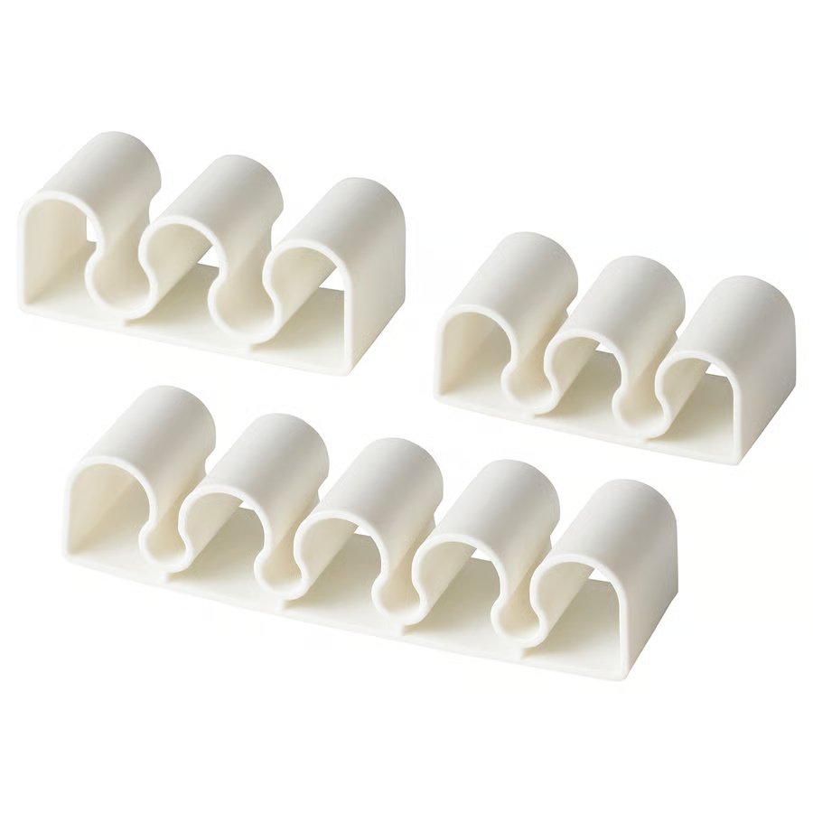 KALKSTUFF cable holders help you keep all your cables organised – for example, you can place them on the side of your desk, behind your TV or anywhere you need them.
