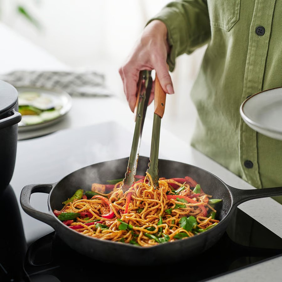 VARDAGEN Cooking tweezers, stainless steel/beech, 30 cm