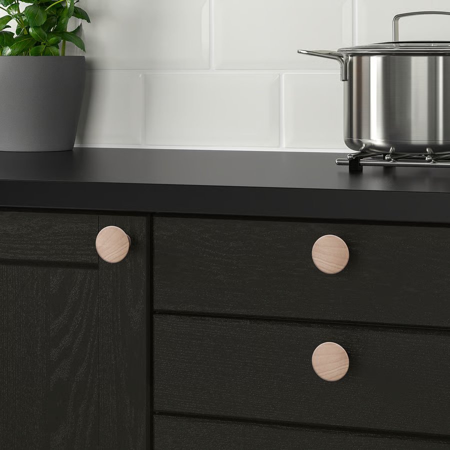 VINNÄSET knob in solid beech offer a clean and simple design that works well both in traditional and modern-style settings.